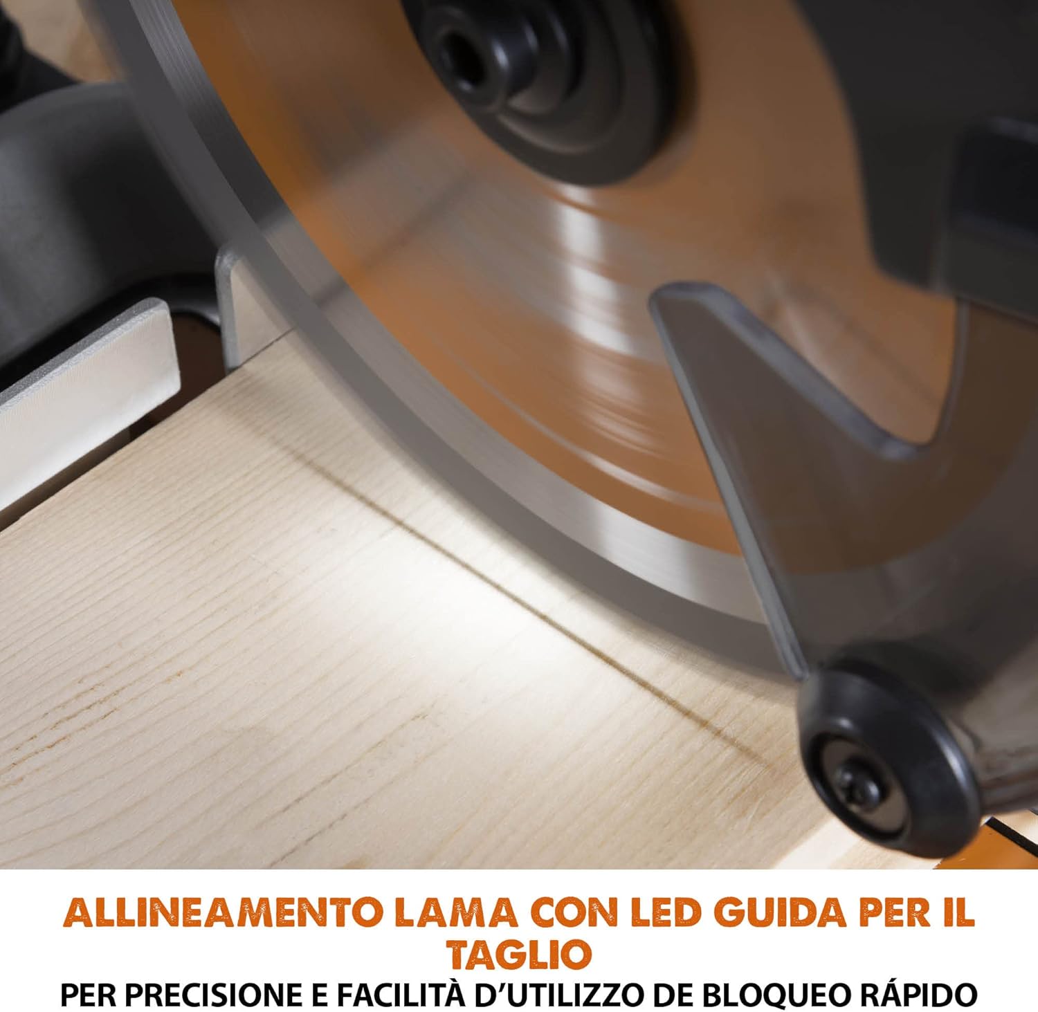 Precisione professionale: guida laser/LED, smussi e biselli, scorrimento della lama: perfetta per cornici, modanature, profili su misura.