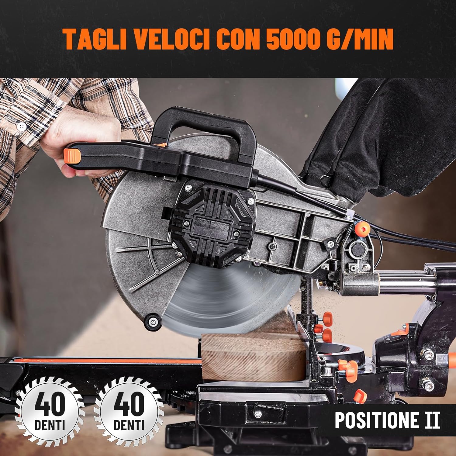 Angolo di taglio regolabile fino a 45°, garantendo flessibilità nelle inclinazioni.